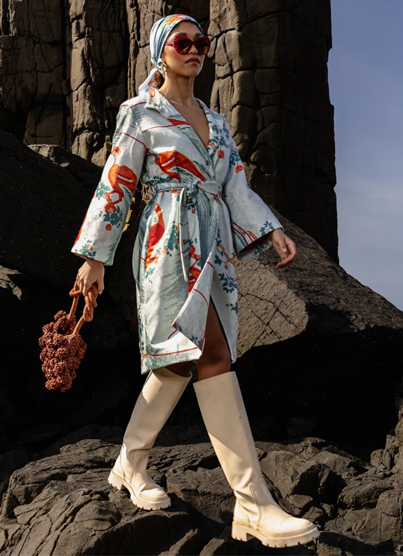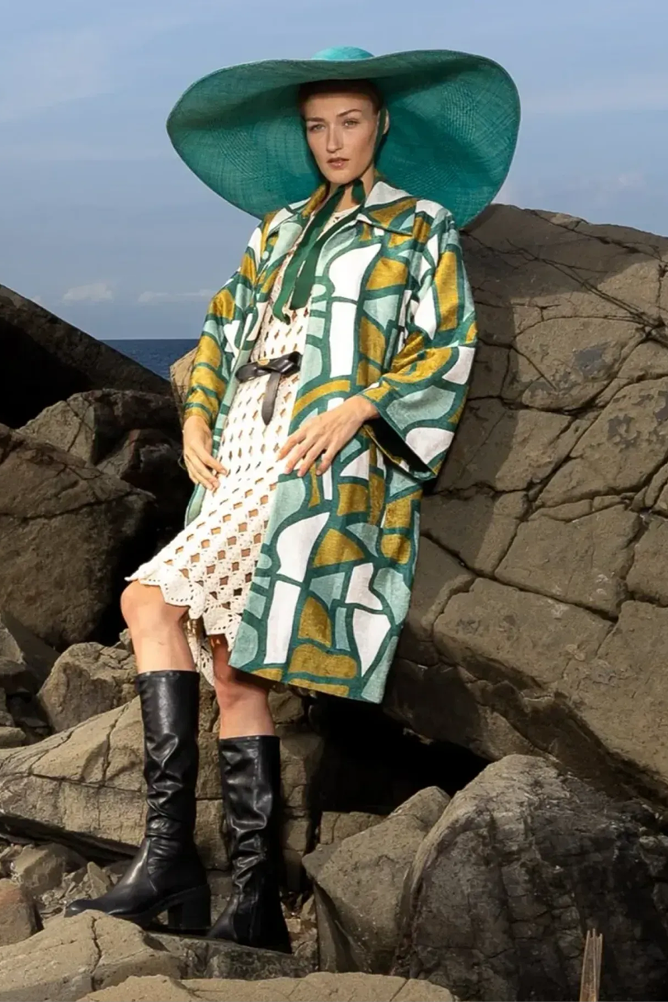 Florence Broadhurst’s work defied convention: bold, tactile, layered in Eastern and European influences. For the first time in decades, these patterns have been reimagined and reinterpreted through My Paloma’s sculptural outerwear and hand-finished accessories.