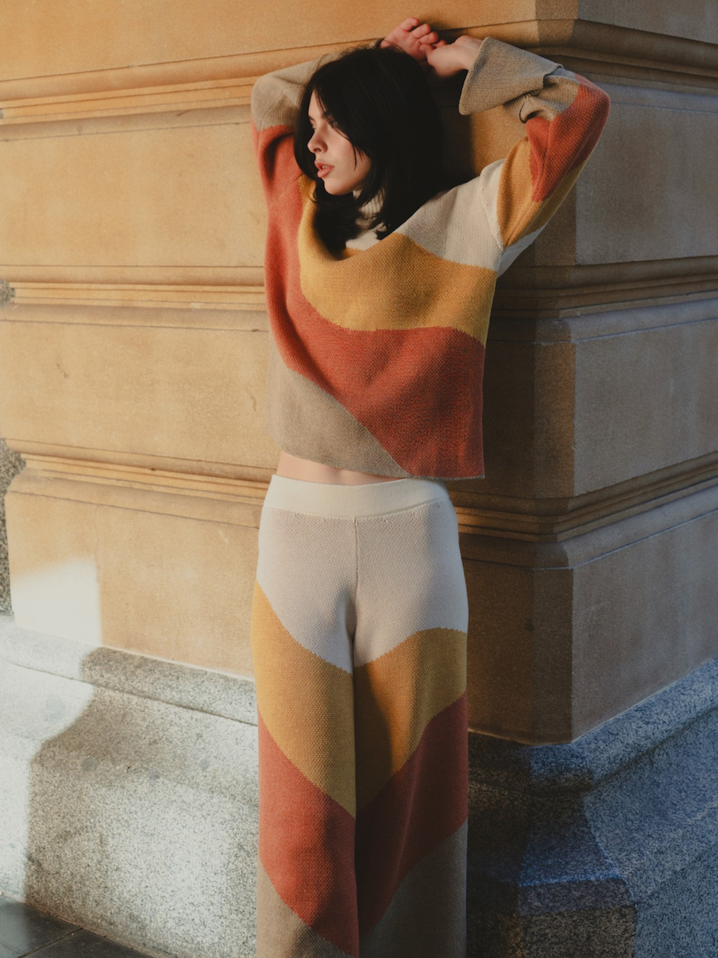 My Paloma's sweater is a comfortable fit, boasting a fresh pattern with a stylish blend of orange, yellow ochre and cream threads. Its mock neckline adds an elegant touch and the Tanguis cotton composition will ensure it lasts for years to come.