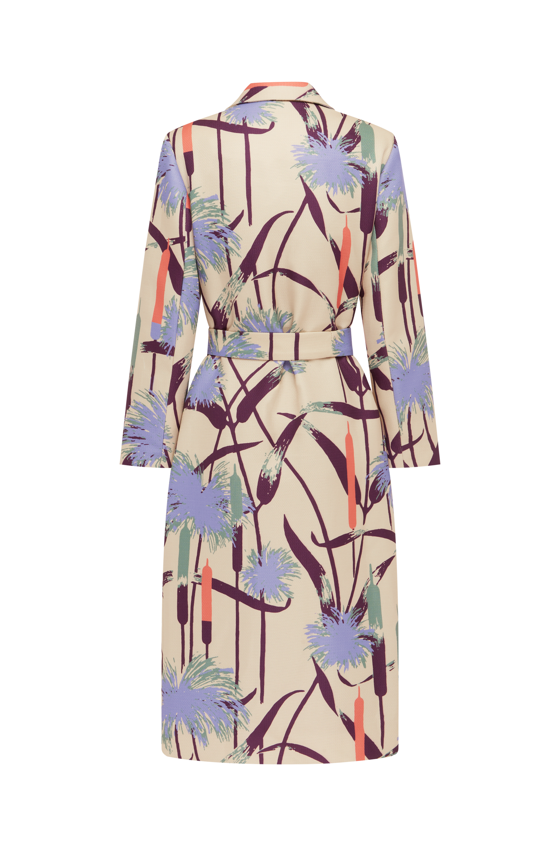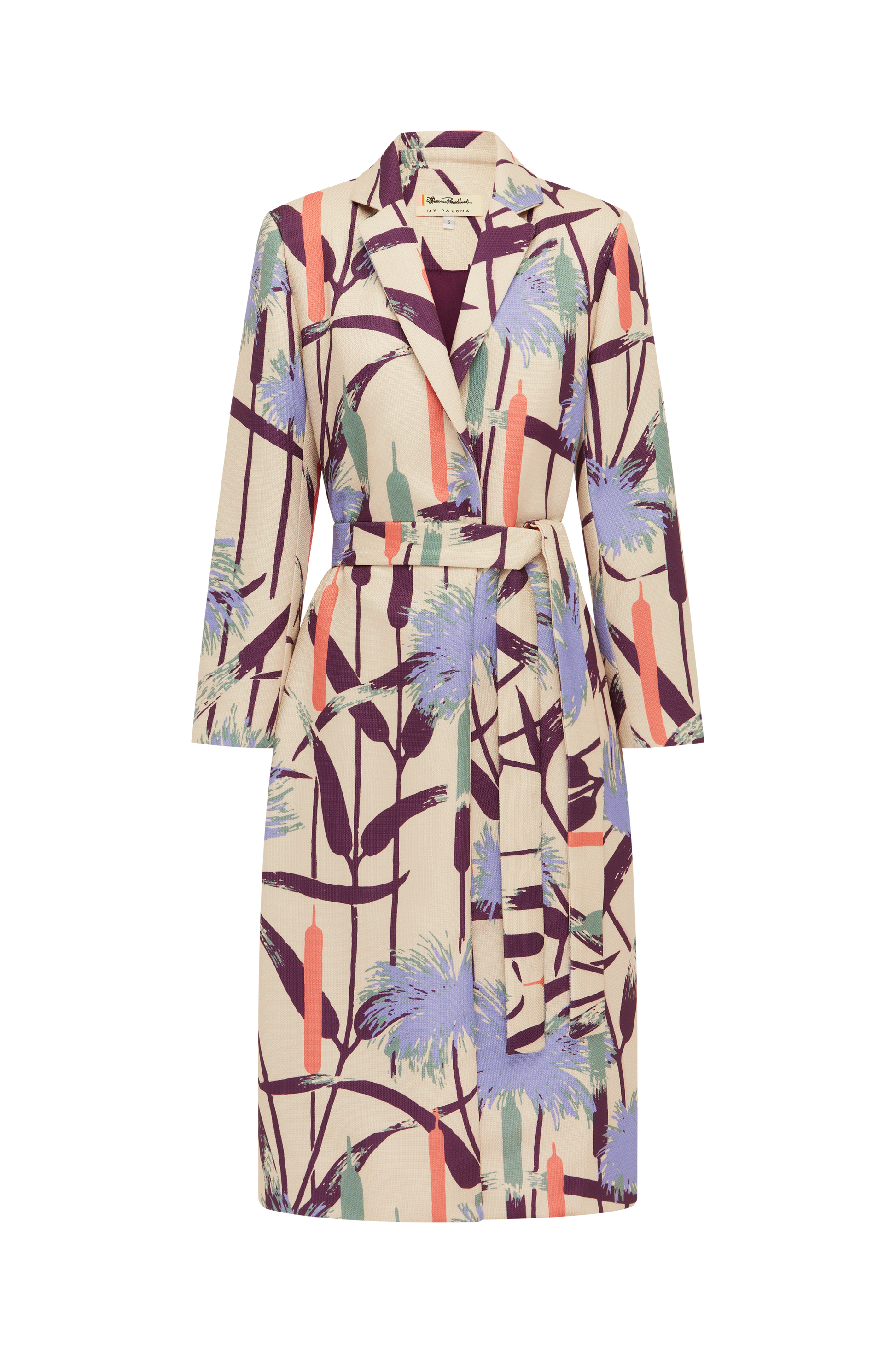 The Papyrus coat is a work of art, crafted to perfection. This coat is cut in a bricolage of papyrus graphics from the label's collaboration with the Florence Broadhurst archive. The optional belt allows you to define your silhouette, while the contrasting coloured lining adds a sophisticated surprise with every movement.
